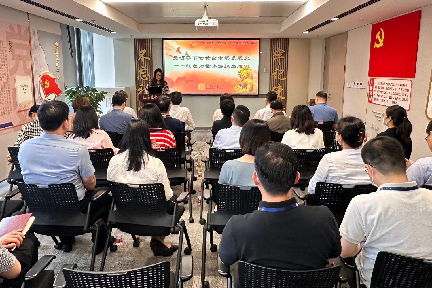 为深入开展学习贯彻习近平新时代中国特色社会主义思想主题教育,结合“强国复兴 央行有我”主题宣传教育活动,七一前夕,上海黄金交易所(以下简称上金所)聚焦党领导下的黄金市场发展史,举办“红色力量淬炼担当意识”专题宣讲活动,讲述新中国成立后黄金勘探的艰辛故事,进一步弘扬伟大建党精神,引导干部员工勇于担当、敢于作为,传承红色基因,巩固主题教育学习成果。